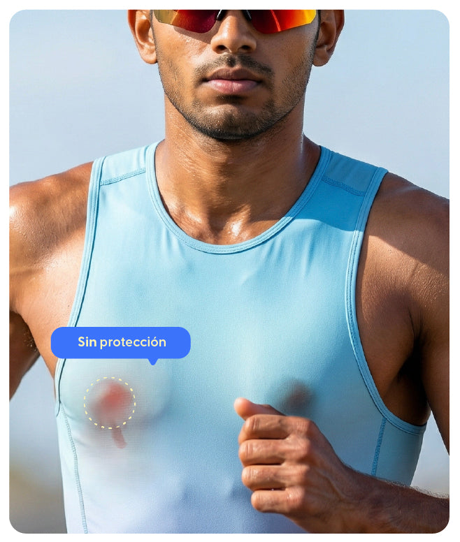 Muchos corredores en México intentan usar "cinta médica" o curitas, pero el sudor las despega a los 5km. Nuestros protectores están diseñados con adhesivo de silicona de alta calidad que resiste la humedad y el vello en el pecho, garantizando protección total desde el calentamiento hasta la meta.